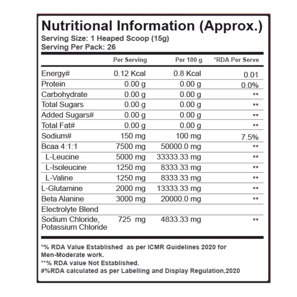 Take your performance to new heights and unlock maximum muscle growth with BCAA 4:1:1. Our advanced formula combines the power of branched-chain amino acids (BCAA) with Beta Alanine and L-Glutamine, providing you with the perfect ratio of nutrients to enhance endurance, accelerate recovery, and promote muscle development. With tantalizing flavors like Mango, Orange, Fruit Punch, Pina Colada, Watermelon, Bubble Gum, and Blue Raspberry, BCAA 4:1:1 offers a delicious and effective way to optimize your athletic performance.