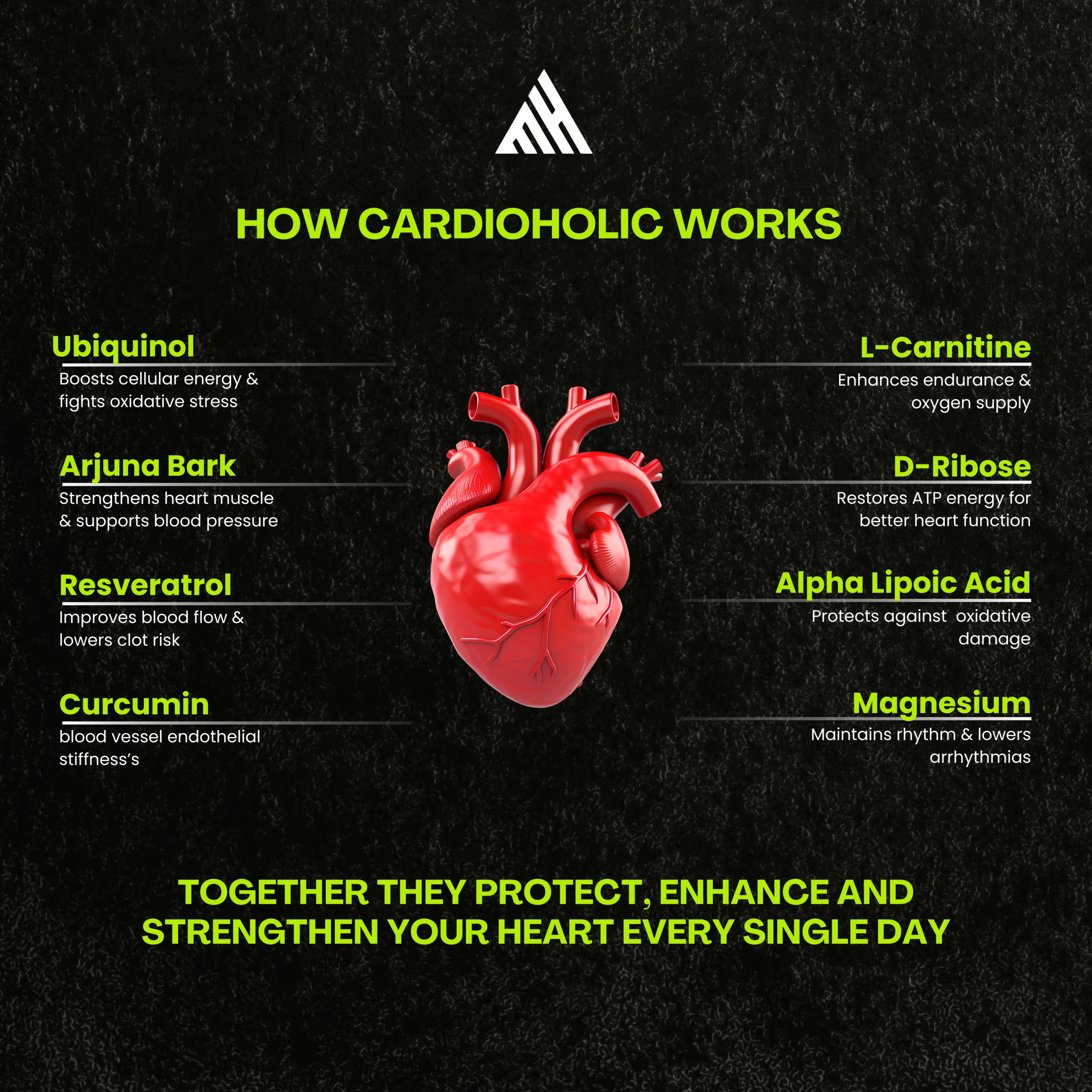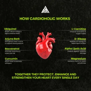Cardioholic is an all-natural supplement crafted to boost heart health and enhance cardiovascular performance. Featuring potent ingredients like Ubiquinol, Curcumin, and Magnesium, it strengthens heart function, reduces oxidative stress, and stabilizes blood pressure. Whether you’re managing cholesterol or seeking to improve overall heart performance, Cardioholic is the key to a healthier heart.