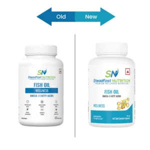 Steadfast Nutrition’s Fish Oil provides high-quality Omega-3 fatty acids, which boost heart health by lowering bad cholesterol, strengthen joints, reduce inflammation, improve cognitive function, and overall health. It contains the crucial omega-3 fatty acids: Eicosapentaenoic acid (EPA) and Docosahexaenoic acid (DHA) in the 3:2 ratio, which works best for human body utilisation.