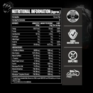 Karnage Black is an ultra-high energy pre-workout, which packs a potent 14g serving. Crafted for experienced gym goers, it stands out among the best pre-workout supplements, delivering an explosive energy boost and intense workout fuel for those who go hard at the gym. Karnage Black isn’t just about energy – it’s a powerhouse for intense pumps and enhanced endurance. As a nitric oxide pre-workout, it ensures you push your limits with every rep, making it a top choice for athletes seeking an advanced and endurance-boosting solution.