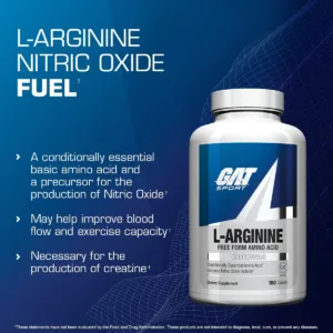 High performance athletes need as much blood flowing to their muscles as possible. GAT Sport L-ARGININE is a conditionally essential amino acid and is a precursor for the production of nitric oxide and nutrient delivery helping to increase athletic performance.