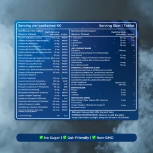 TOTAL WELLNESS IN ONE TABLET. Multivitamin + Multimineral + Herbal Extracts for Daily Immunity, Energy & Gut Health