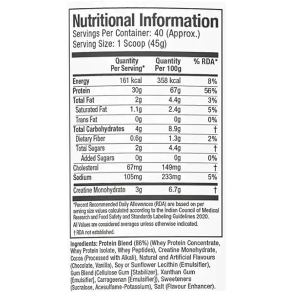 - More Muscle & Faster Recovery: With 3g of creatine, you may build more muscle than with just protein alone. It may boost your strength and may restore energy for more lean muscle with each push. It also contains 5g of glutamine & precursor, 6.7g of BCAA which may help in faster recovery from fatigue