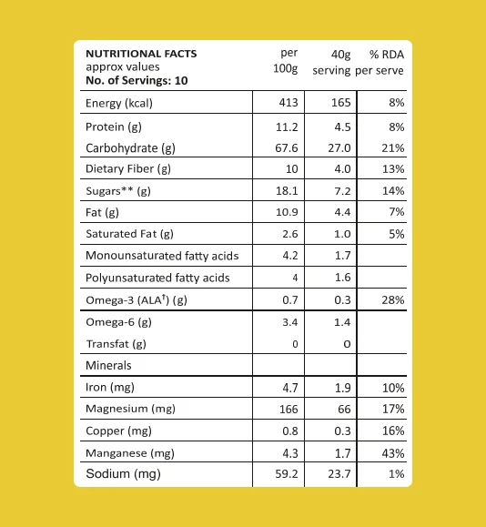 - Enriched with fiber, protein, antioxidants, and omega-3 fatty acids.
