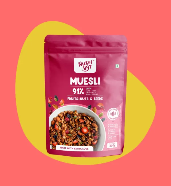 - Made with a whole lotta grains, dried fruits, nuts, and seeds (83% to be precise).